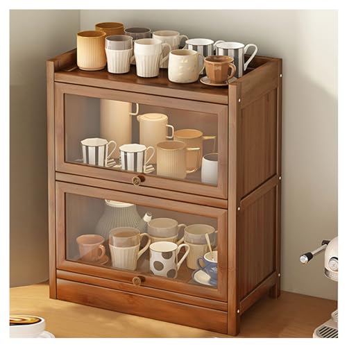 BAIRU Natural bamboo double-layer bread box with drawers, acrylic door, kitchen storage box, large capacity food preservation storage cabinet, environmentally friendly(Brown,63x38.5cm/25x15in)