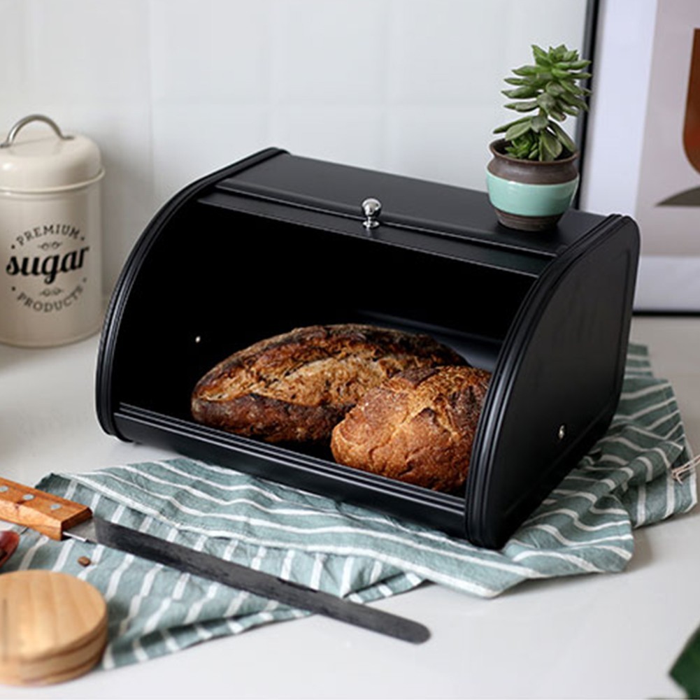 1Pc Home Bread Bin Bread Metal Box with Roll Lid Large Capacity Bread Box
