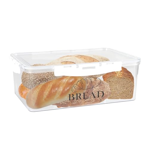 Gzsekken Bread Bin Bread Container with Lid, Plastic Bread Bins for Kitchen,Large Bread Storage Box BPA-Free Plastic Food Container for Bread Keeper for Homemade Bread Toast, Bagel, Donut and Cookies