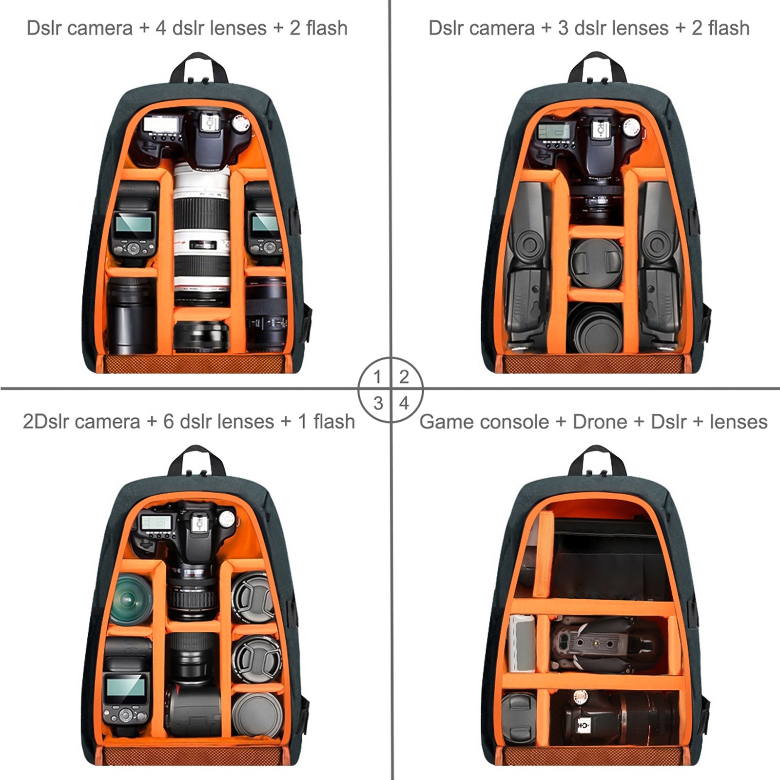 Plyisty Large Capacity Camera Backpack USB Charging Port for DSLR Camera Outdoor Travel Photography Heat Dissipation Nylon Oxford (Orange Grey)