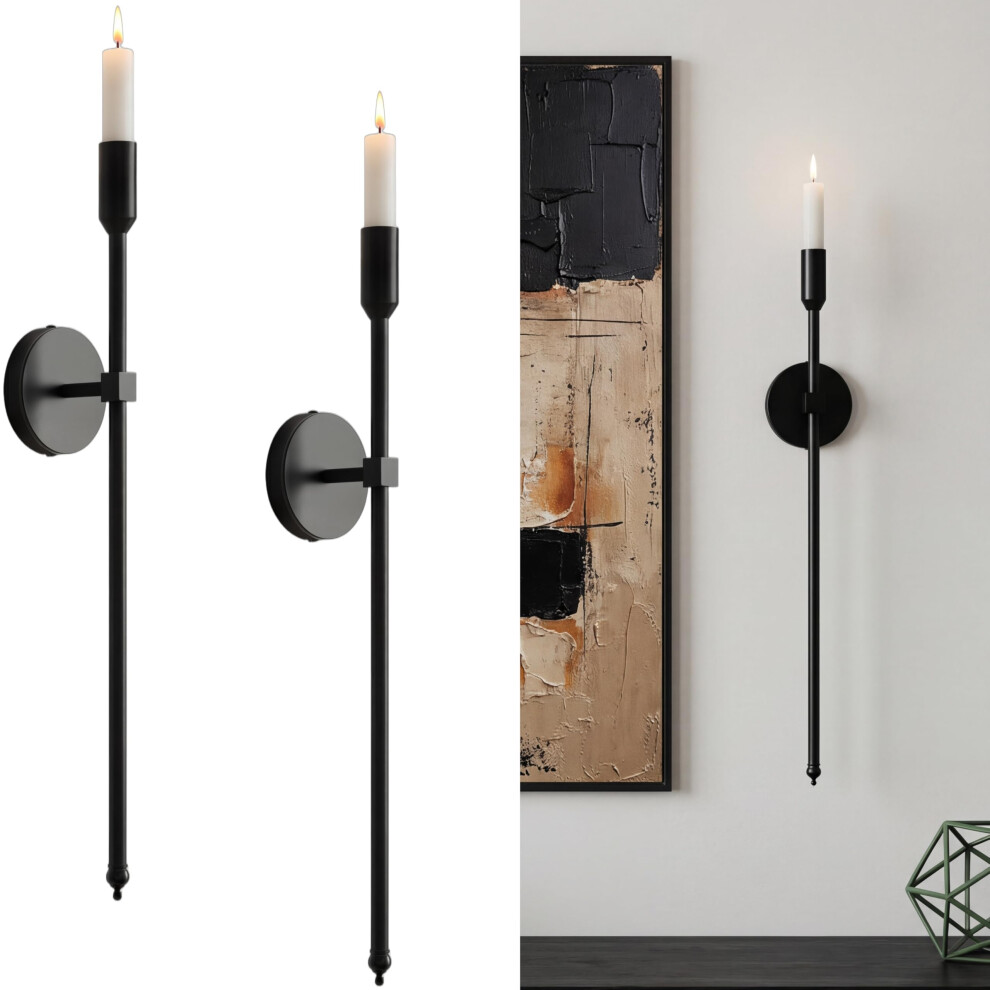 Modern Wall Sconces, Set of 2, Large Wall Candle Holders, Modern Elegant Home Decor for Bedroom, Dining Room, Living Room (Black)