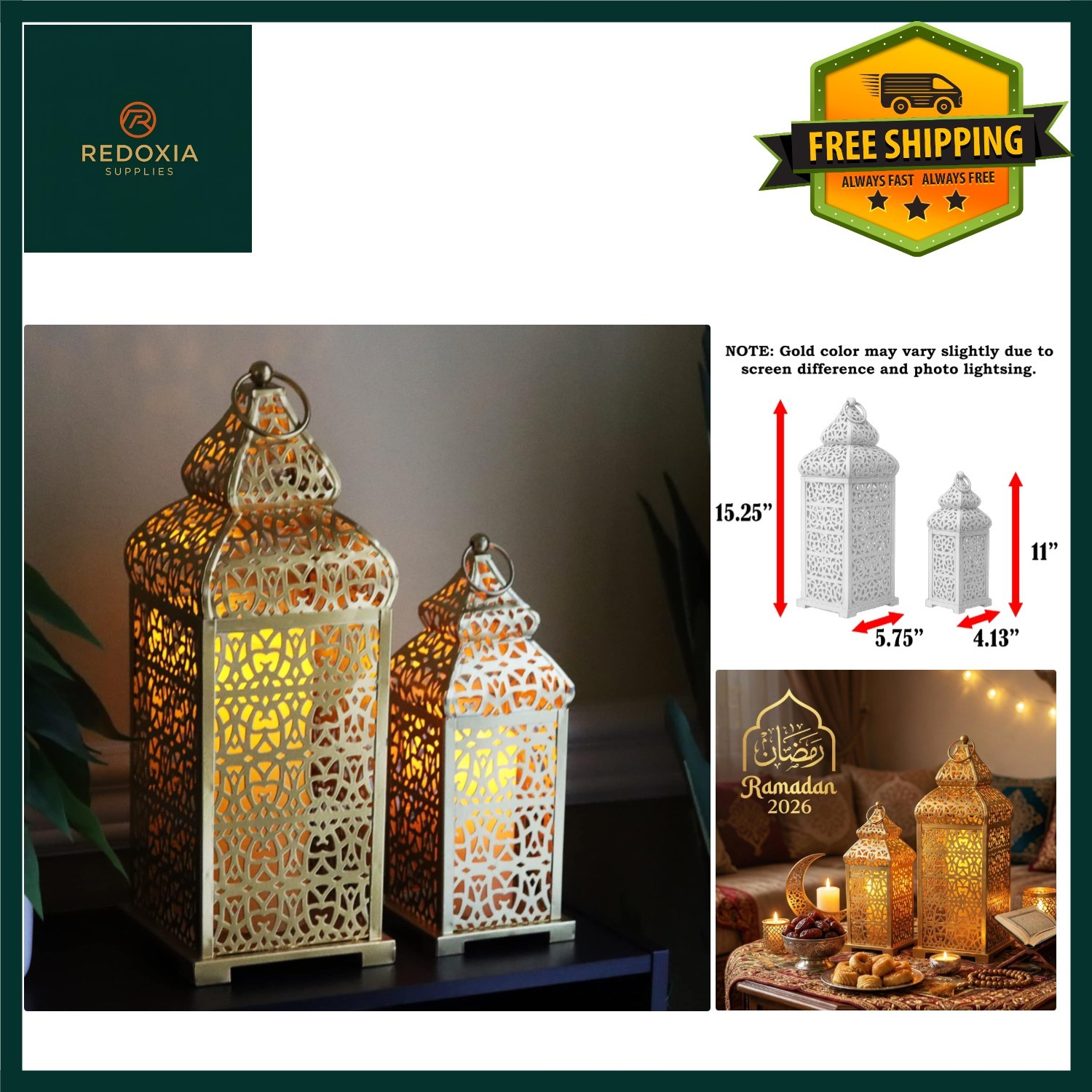 (Small Large) 2-Pack Moroccan Style Metal Lanterns, Hollow-Out Projection Iron Art Candle Holders, Festive Tabletop Decor for Valentine's, Home & Kit