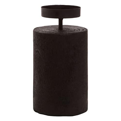 Premier Housewares/Large Candle Holder/Wooden Tea Light Candle Holders/Black Tealight Holders/Modern Wooden Candle Holder/Minimalist Candlestick Holders / W8 x D8 x H16cm