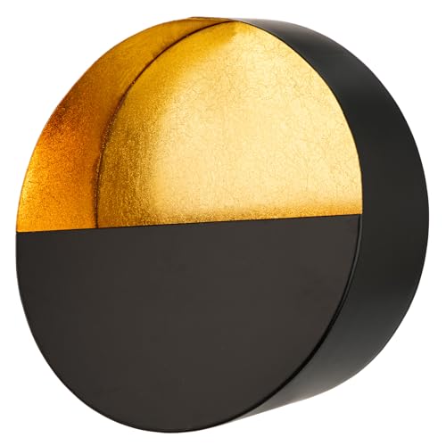 Luxury Metal Wall Candle Sconces – Large Handcrafted Wall-Mounted Tealight Candle Holders with Gold Leaf Interior – Modern & Rustic Home Décor for Living Room, Hallway – 11.8" Black Single Piece