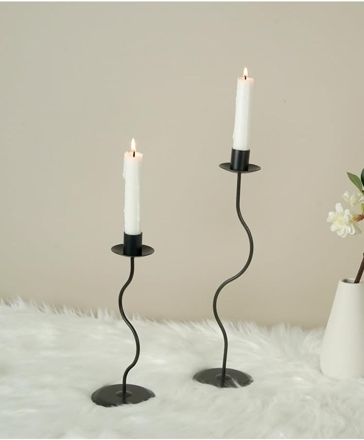 Modern Black Metal Candle Holders - Wave Design with Hat-Style Base (Large)
