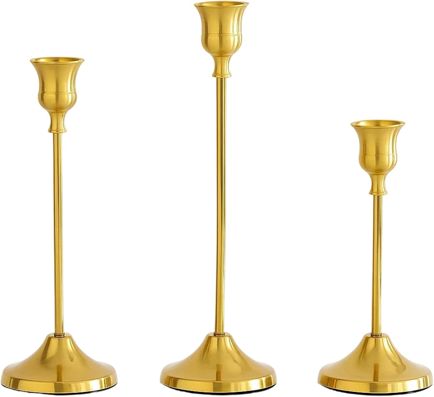 3 Pcs Gold Candle Holders, Set of Small, Medium and Large Vintage Candlestick H