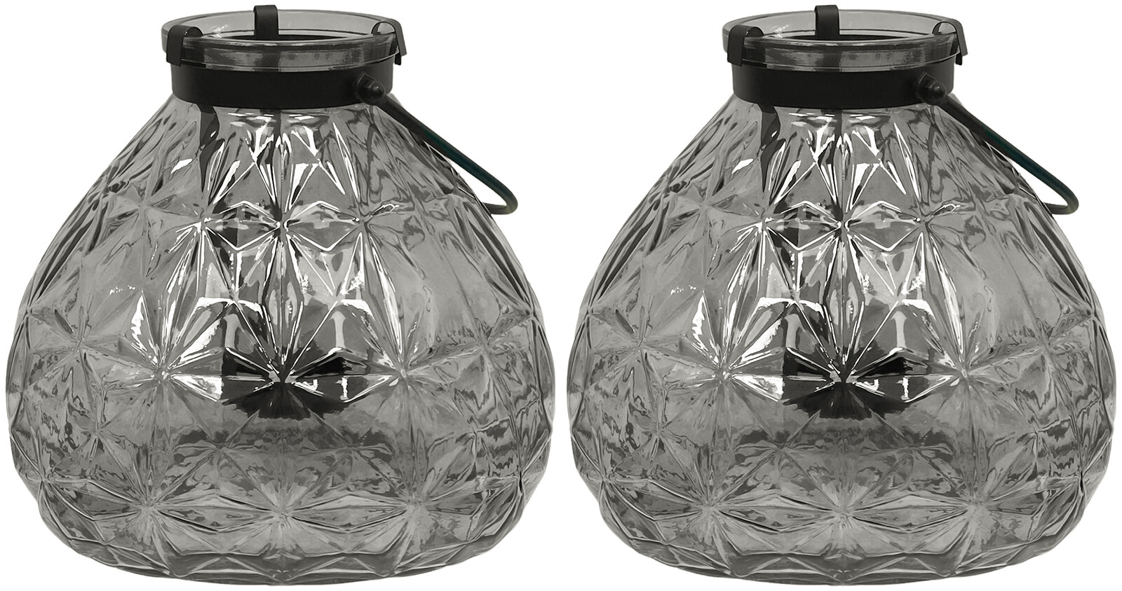 LARGE Glass Candle Lantern With Handle Set Of 2 Tealight Pillar Candle Holders