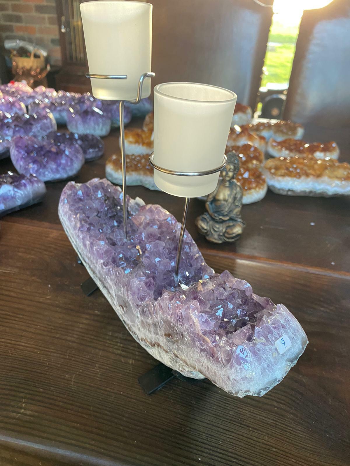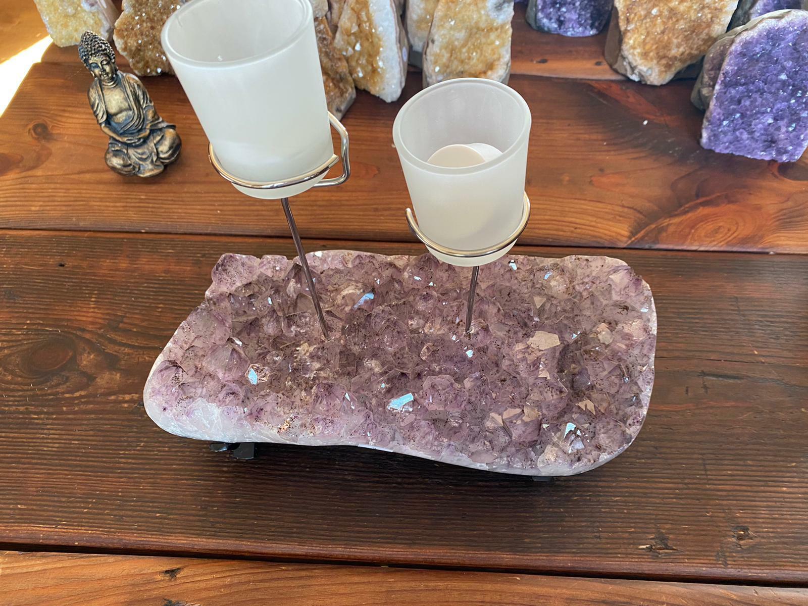 Very Large Huge Amethyst 1 Cluster Druzy Candle / 2 Cup Tealight Holders