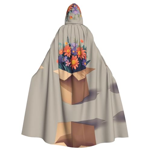 WHJSSF Flowers In A Cardboard Box Printing Halloween Adult Hooded Cape Super Large Hooded Cloak