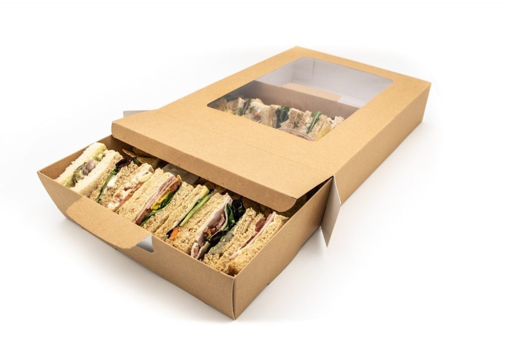 £ 50 x Large Cardboard Sandwich Platter Boxes Tray and Window Tuck Top Box