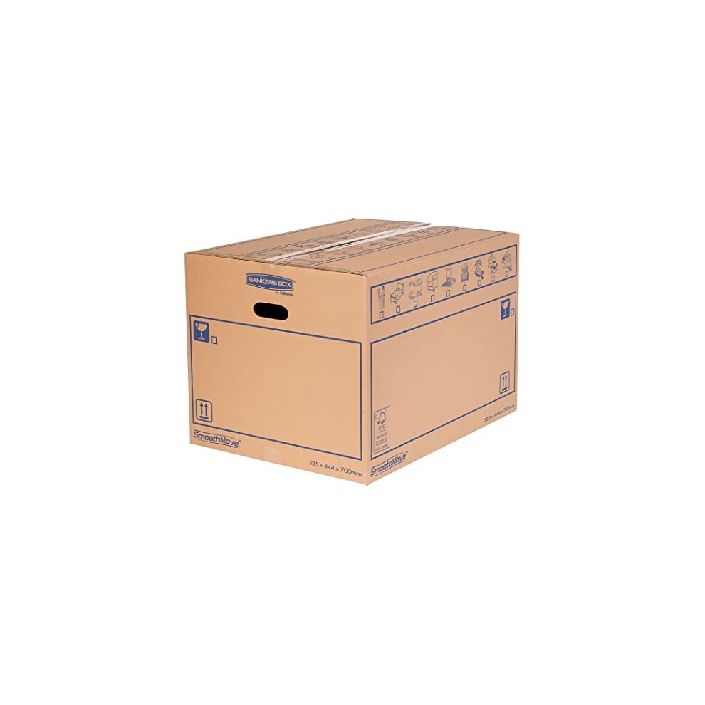 BANKERS BOX 8 Large Strong Moving Boxes, 39L C-Flute SmoothMove Cardboard Boxes, Heavy Duty Boxes for Moving House with Handles, 47cm x 32cm x 26cm