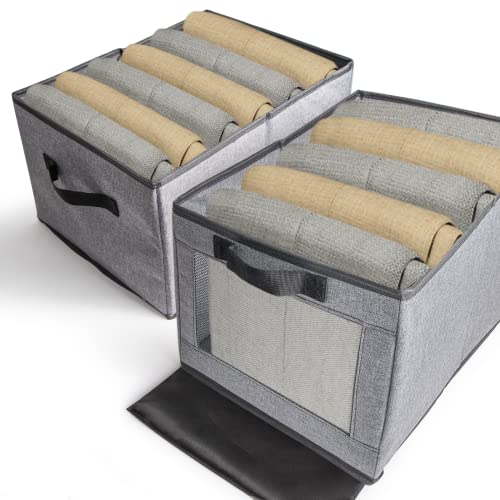 tEEZErshop Wardrobe Organiser 2 Pieces|40x32x23 Large Capacity Boxes Wardrobe with Stable PP Cardboard [ca.1,3kg] Foldable Mesh Clothes Storage & Storage Box with Transparent