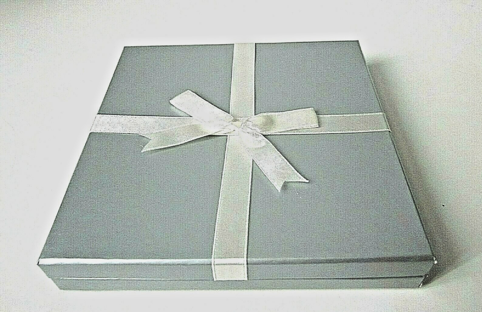 Large Silver Cardboard Jewellery Necklace Gift Box Satin Bow-329/N-FAST DISPATCH