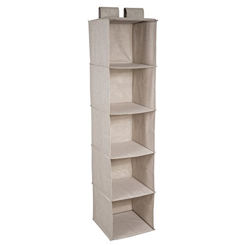 Bigso Box of Sweden Hanging Storage Organiser with 5 Large Storage Compartments, Hanging Storage for Wardrobe with Velcro Fastening, Cupboard Storage Made of Polyester and Cardboard, Grey.