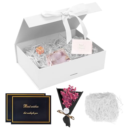 RAFIYU Gift Box for Presents Large 23 * 17 * 7cm, Gift Box with Lid for Gifts, Magnetic Cardboard Wedding Favor Boxes, Christmas, Birthday Gifts, Party Favor Boxes (White)