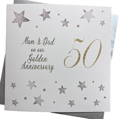 WHITE COTTON CARDS Large Big Twist Range, Mum and Dad On Your Golden 50" Handmade 50th Anniversary Card, XF50M