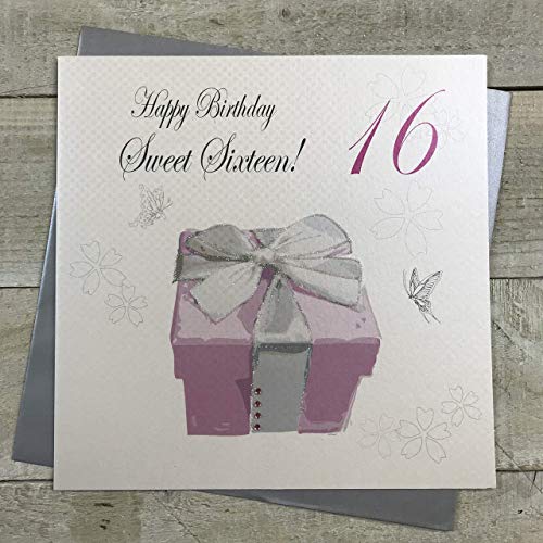 WHITE COTTON CARDS Large Happy Teenager Sweet Sixteen, Pink Present Handmade 16th Birthday Card, XPB16