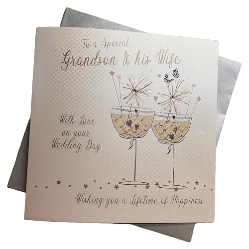 white cotton cards Large Champagne Flutes To a Special Grandson & His Wife On Your Wedding Day Handmade Wedding Card, XBD83