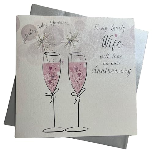WHITE COTTON CARDS Large to My Lovely Wife Happy Anniversary Handmade Card, White, XLBD16