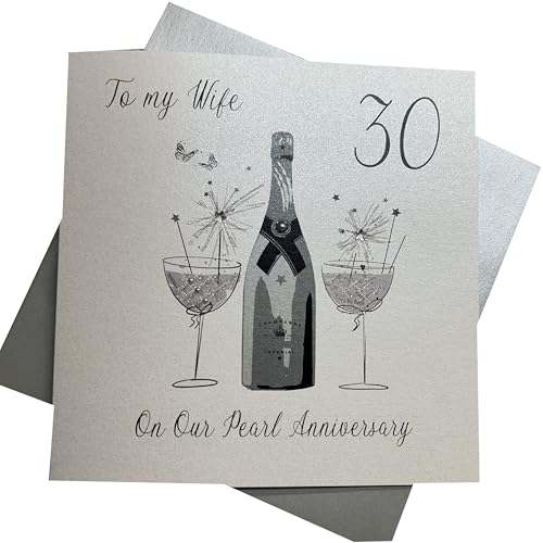 white cotton cards Large To My Wife Pearl Wedding Anniversary, Handmade 30th Anniversary Card, XLBD30W
