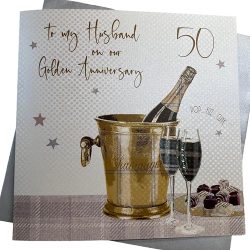 White Cotton Cards Large Big Twist Range Golden, To My Husband On Our Golden Anniversary 50" Handmade 50th Anniversary Card