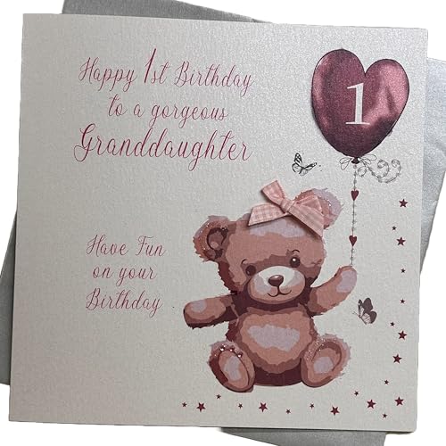 White Cotton Cards Large Pink Bunny, Gorgeous Granddaughter 1 Have Fun On Your Birthday Handmade 1st Birthday Card, XNGD1