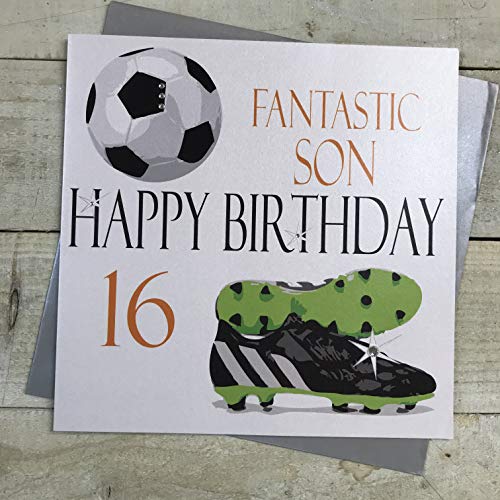 WHITE COTTON CARDS Large Fantastic Son Happy 16" Handmade 16th Birthday Card, XN16s