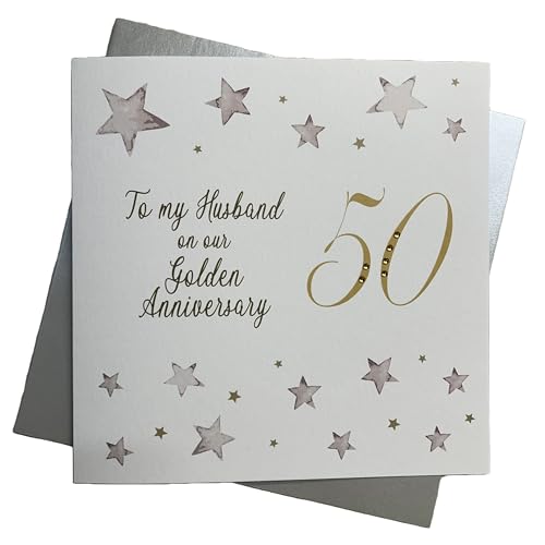 white cotton cards Large to My Husband Golden Wedding, Handmade 50th Anniversary Card, White, XLBD50H
