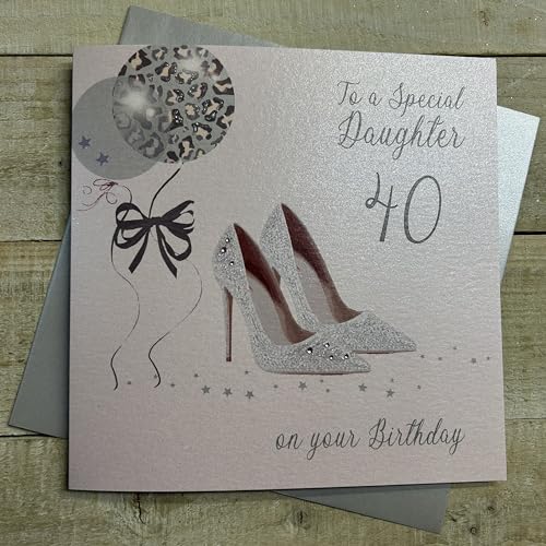 White Cotton Cards Large "Glitter Ball & Shoes, 40 To a Special Daughter On Your Birthday" Handmade 40th Birthday Card, X40D