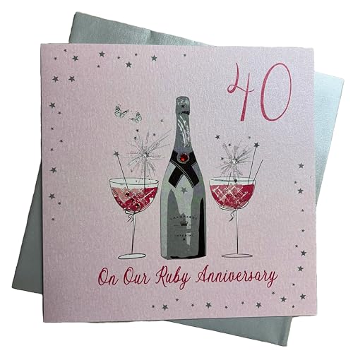 white cotton cards Large On Our Ruby Wedding Anniversary,Handmade 40th Anniversary Card, White