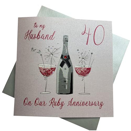 White Cotton Cards Large "To My Husband Ruby Wedding Anniversary, Handmade 40th Anniversary" Card, White, XLBD40H