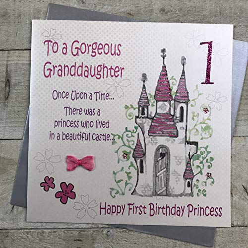white cotton cards Large Fairy Tale, Princess Castle, To A Gorgeous Granddaughter Handmade 1st Birthday Card, XGL4