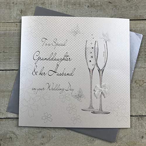 white cotton cards Large Champagne Flutes to a Special Granddaughter & Her Husband Day Handmade Wedding Card, XBD82