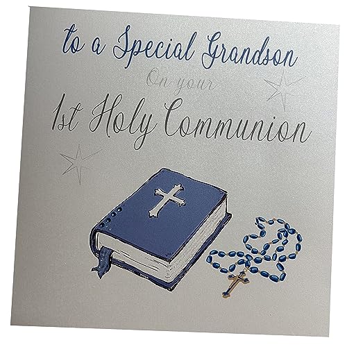 white cotton cards Large Handmade To A Special Grandson On Your 1st Holy Communion Blue Bible Card, White, XN89GS