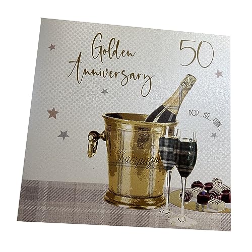WHITE COTTON CARDS Large Golden Wedding, Handmade 50th Anniversary Card, White, XLBD50