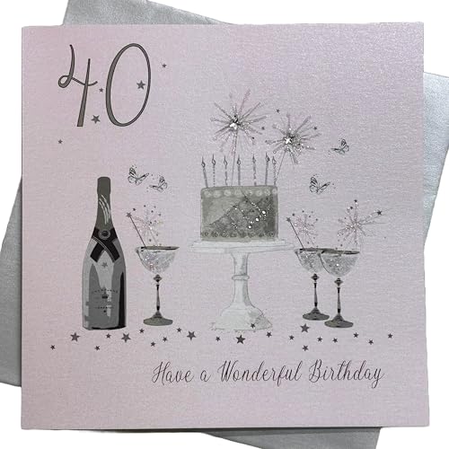 White Cotton Cards Large Handmade 40th Happy Birthday Card, XXBDA40