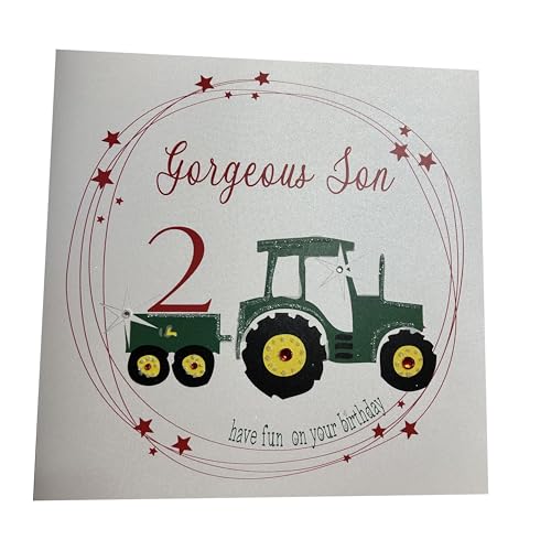 White Cotton Cards Large Gorgeous Son Happy Birthday 2" Handmade 2nd Birthday Card, XNS2