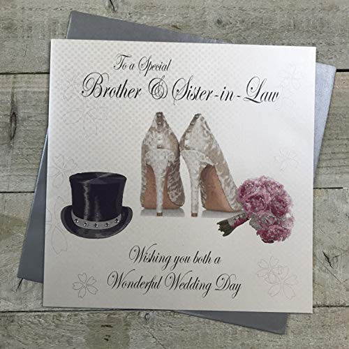 white cotton cards Large To a Special Brother and Sister-in-Law Wishing You Both a Wonderful Wedding Day Handmade Card, White, XMPD7