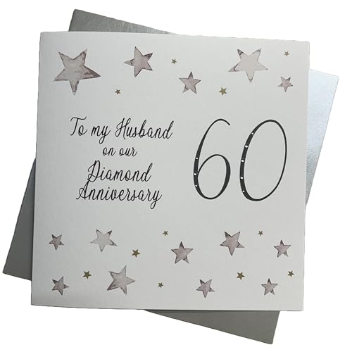 White Cotton Cards Large Big Twist Range Diamond, To My Husband On Our Diamond Anniversary 60" Handmade 60th Anniversary Card