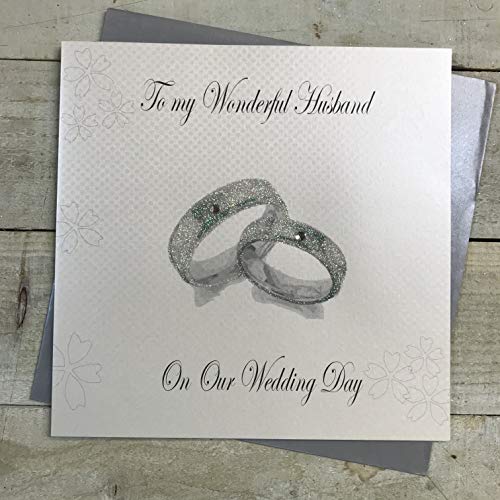 WHITE COTTON CARDS Large Rings, to My Husband Day Handmade Wedding Card, XPD11