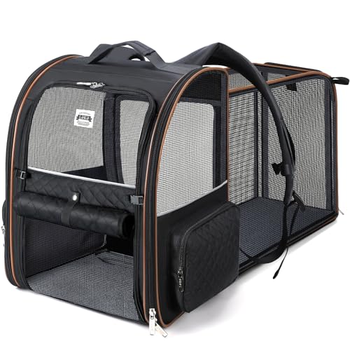 Lekesky Large Cat Carrier Backpack Expandable - Pet Carrier Backpack for Small Dogs Medium Cats Fit Up to 25 Lbs, Black, XL
