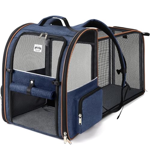 Lekesky Large Cat Carrier Backpack Expandable - Pet Carrier Backpack for Small Dogs Medium Cats Fit Up to 25 Lbs, Blue, XL