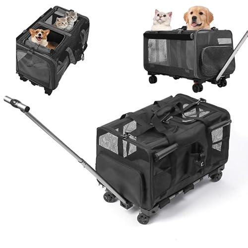 Cat Carrier Soft Side with Wheels for Dog & 2 Cats,Foldable Pet Travel Carrier for Medium Cats Under 25,Large,Black,24 x 16.5 x 15 inches