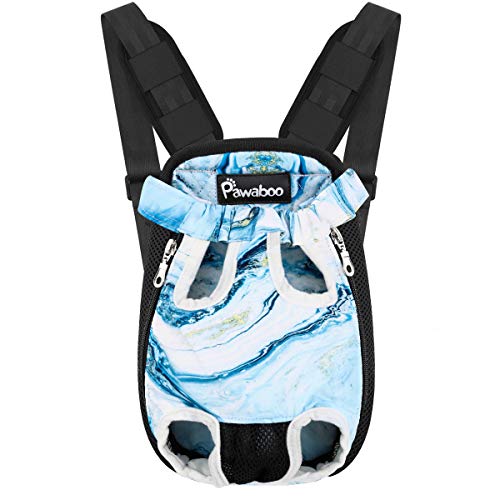 Pawaboo Pet Carrier Backpack, Adjustable Pet Front Cat Dog Carrier Backpack Travel Bag, Legs Out, Easy-Fit for Traveling Hiking Camping for Small Medium Dogs Cats Puppies, Large, Blue Marble