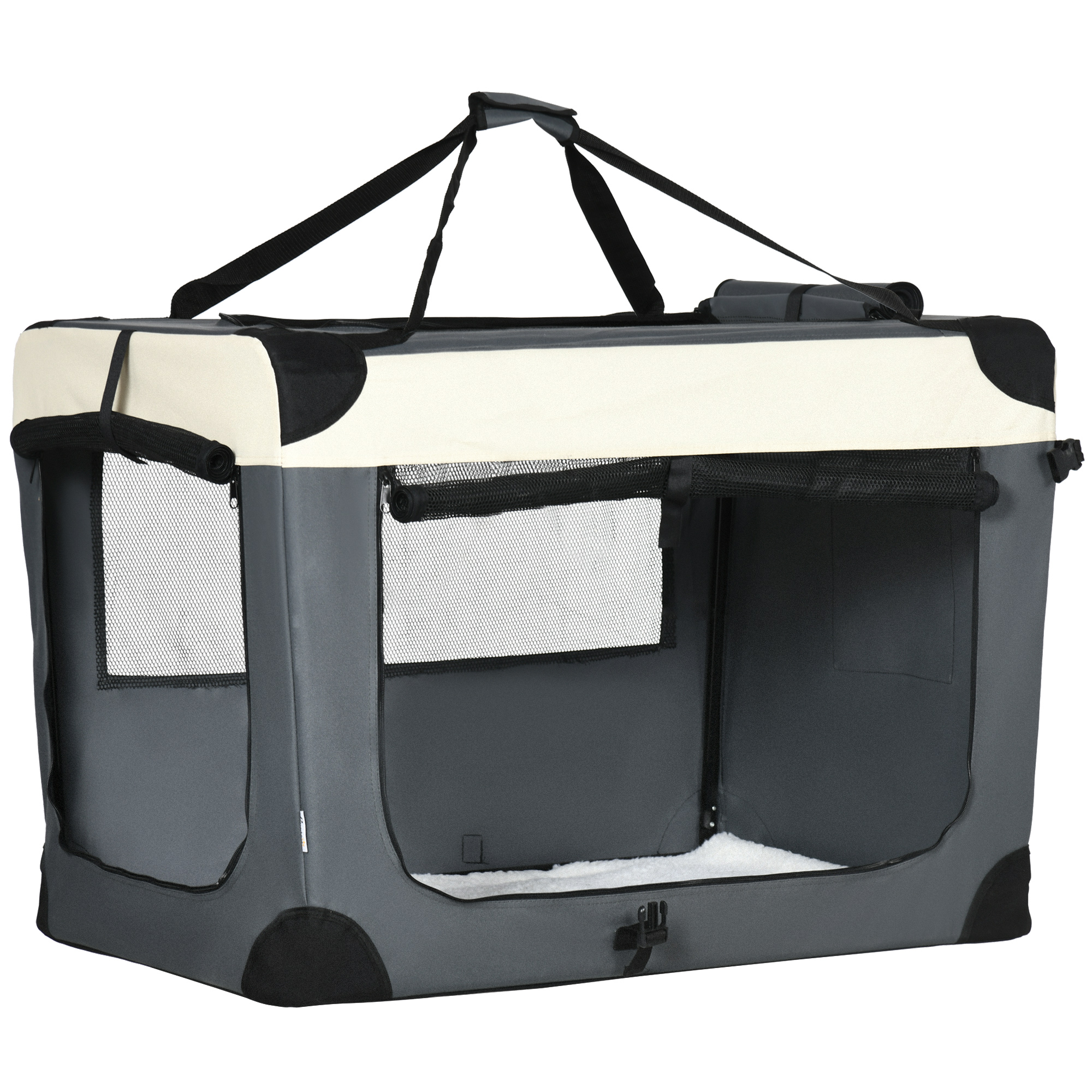 Pawhut 91cm Foldable Pet Carrier, With Cushion, For Large Dogs And Cats - Grey