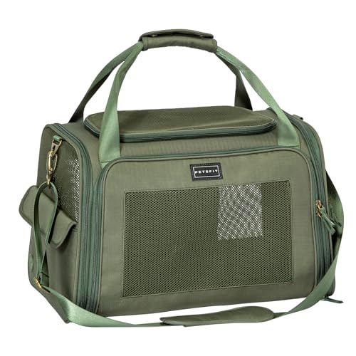 Petsfit Dog Carrier Soft Sided Travel Carrier, Lightweight Travel Use Pet Carrier for Small Dogs and Cats, with Expandable mat, Upgraded Large Space Soft Sided Pet Cat Carrier, Olive Green