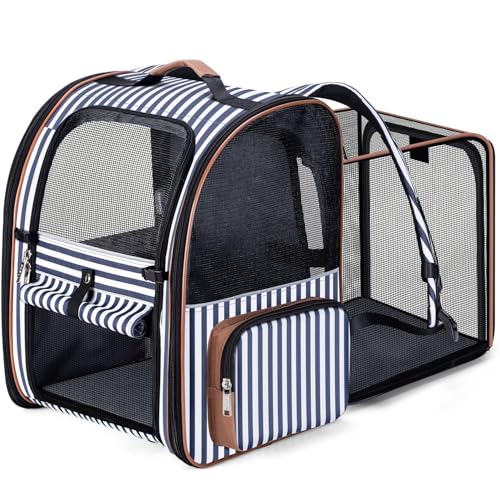 Lekesky Large Cat Carrier Backpack Expandable - Pet Carrier Backpack for Small Dogs Medium Cats Fit Up to 25 Lbs, Striped, XL