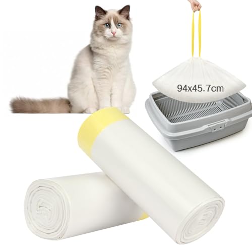 Adiwo 20 Pcs Cat Litter Tray Liners, 94 X 45.7cm Large Durable Cat Litter Box Waste Bags with Drawstring, Liquid-Resistant and Piodegradable for Pet Cat Litter Box Liners