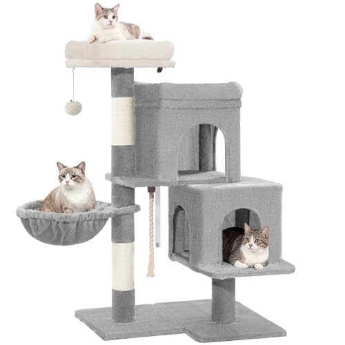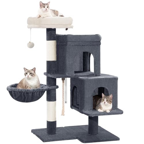 Yaheetech Cat Tree for Indoor Pets, Large Cat Tower Pet Scratching Post Multi-Level Kitten Condo Play House Climbing Tree with 3 Removable Kiten Teaser Sticks, Hammock, Basket, Pet Furniture Dark Grey