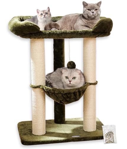 Happi N Pets 71CM Cat Tree Tower for Indoor Cats, Tall Cat Scratching Post with Large Bed for Big Cats, Sisal Scratcher with Soft Perch & Hammock, Stable Cat Stand, Removable Cover-Green